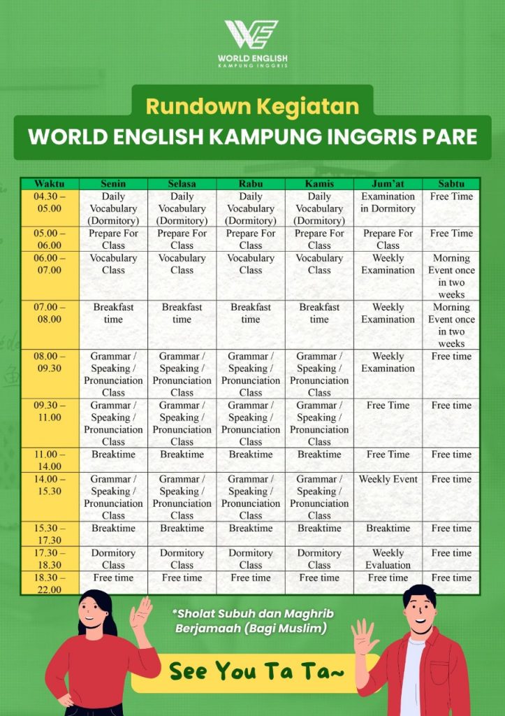 Berikut jadwal harian di Kampung Inggris WE: